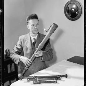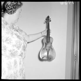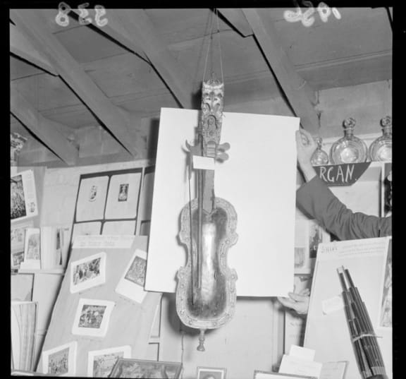 Musical instruments from the collection of Ronald and Zillah Castle. Negatives of the Evening Post newspaper. Ref: EP/1956/0342-F. Alexander Turnbull Library, Wellington, New Zealand. http://natlib.govt.nz/records/22343235