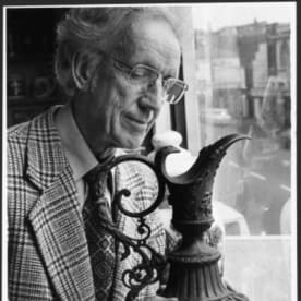 Short, Jack, fl 1977. Pharmacist Ronald Castle with a carboy once used for distilling medicine - Photograph taken by Jack Short. Dominion post (Newspaper) :Photographic negatives and prints of the Evening Post and Dominion newspapers. Ref: EP-Industry-Medicines and pharmaceutical-04. Alexander Turnbull Library, Wellington, New Zealand. http://natlib.govt.nz/records/22805869