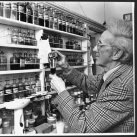 Short, Jack, fl 1977. Pharmacist Ronald Castle preparing medicine at his shop on 139 Riddiford Street, Newtown, Wellington - Photograph taken by Jack Short. Dominion post (Newspaper) :Photographic negatives and prints of the Evening Post and Dominion newspapers. Ref: EP-Industry-Medicines and pharmaceutical-03. Alexander Turnbull Library, Wellington, New Zealand. http://natlib.govt.nz/records/23042736