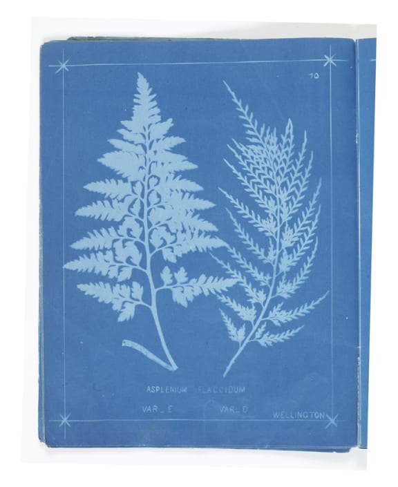 Herbert Dobbie (New Zealand), Aspelenium Flaccidum (Chatham Islands), from New Zealand Ferns (148 Varieties), 1880, book illustrated with cyanotypes, Museum of New Zealand Te Papa Tongarewa, Wellington.