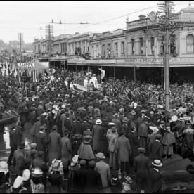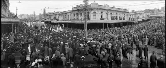 From the Henry Winkelmann Collection. Labour Day Parade, Queen Street, 1904 – Henry Winkelmann: Auckland Libraries Heritage Collections 1-W1163-PAN