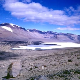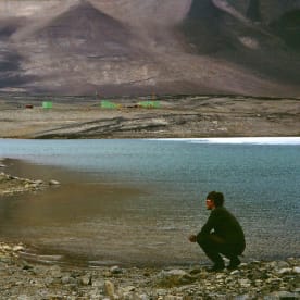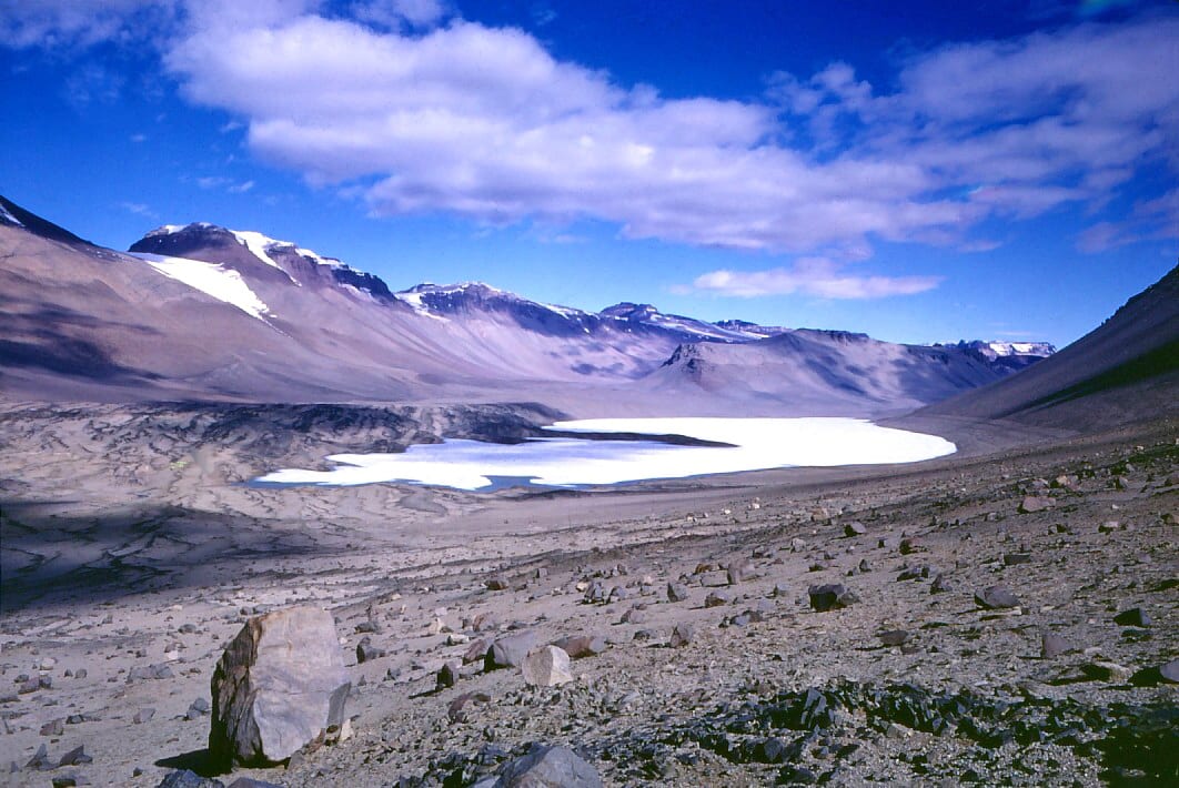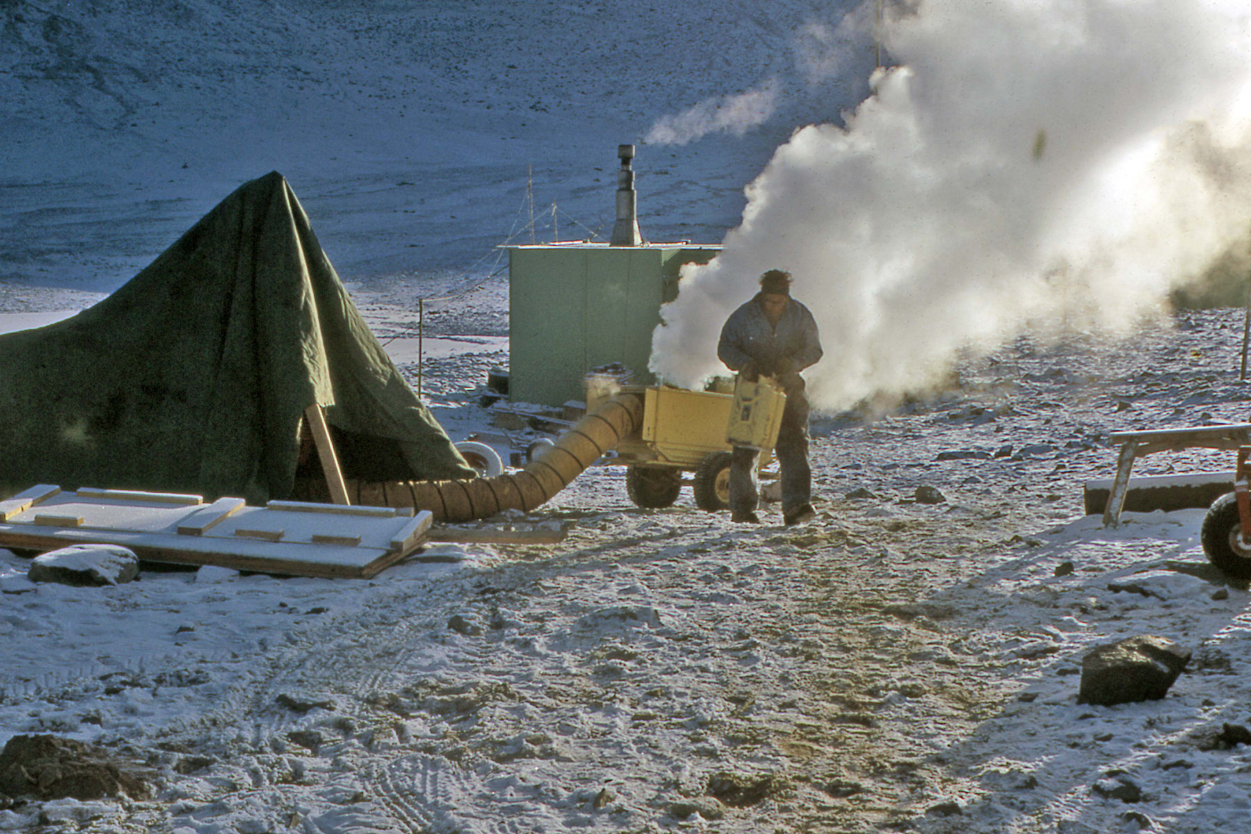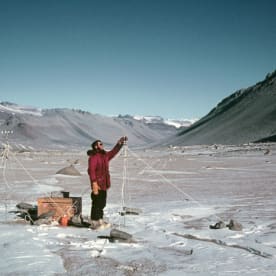 On the shore of Lake Vanda in the Dry Valleys, the group were investigating the strangely snowless landscape, and why the lake, while covered in metres of ice, had waters reaching 25 degrees at the bottom of the lake.