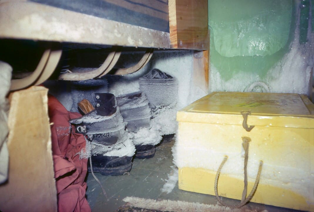 Ice accumulation under Bill’s bunk in the main hut (PHOTO: Bill Lucy)