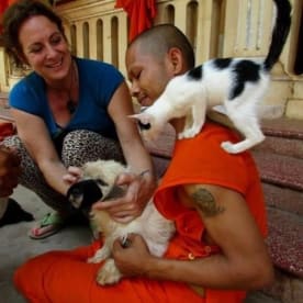 In Cambodia, unwanted animals are left at pagodas for the monks to take care of. An organisation called Siem Reap Pagoda cats works tirelessly to take care of these animals and educates the monks about animal feeding, handling and health care.