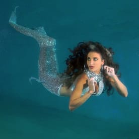 For two years Dunn interviewed women worldwide who perform as mermaids. Now she’s curated an exhibition which not only features several mermaid performers but also artefacts (yes, there are tails), painting, sculpture, photographs, and videos by artists and professional photographers.