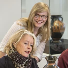 The Logie Collection is a teaching collection first and foremost. Co-Curator Terri Elder (seated) talks with some students.