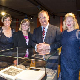 Major donors to the Teece Museum of Classical Antiquities, Leigh Teece and Professor David Teece of Berkeley, California, are flanked by the curators Terri Elder (left) and Penny Minchin-Garvin (right). (134)