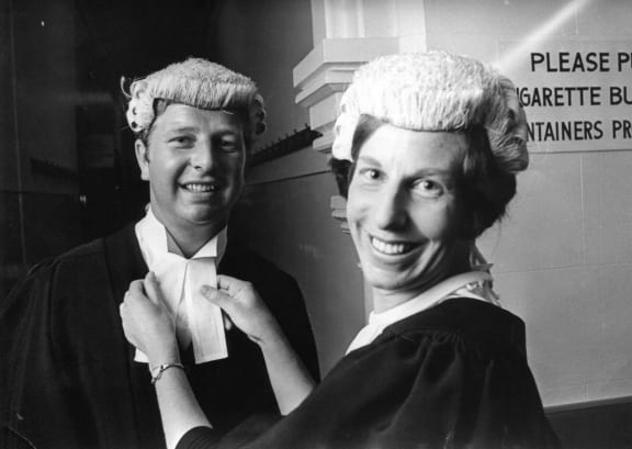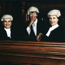 1988: Lowell Goddard, Judith Potter, Sian Elias were the first women to be appointed QCs. Judith Potter was the first woman President of a District Law Society (Auckland). Photo taken in the No. 1 courtroom at the Auckland High Court.