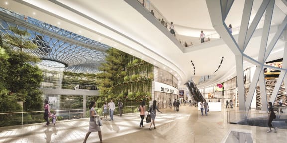 Jewel Changi Airport Section through retail and gardens.