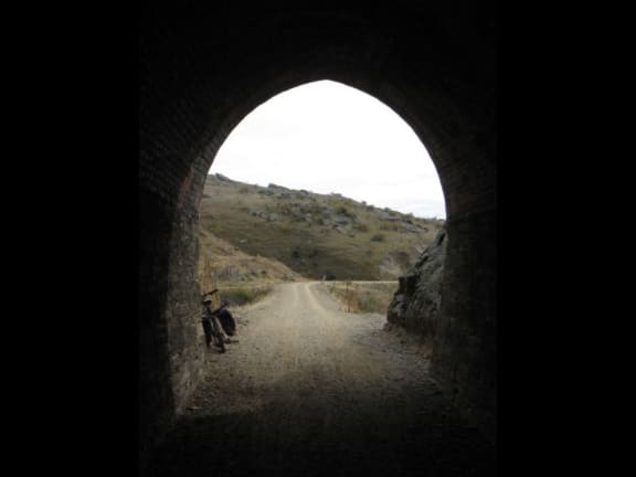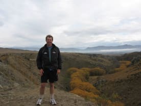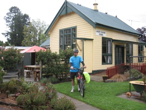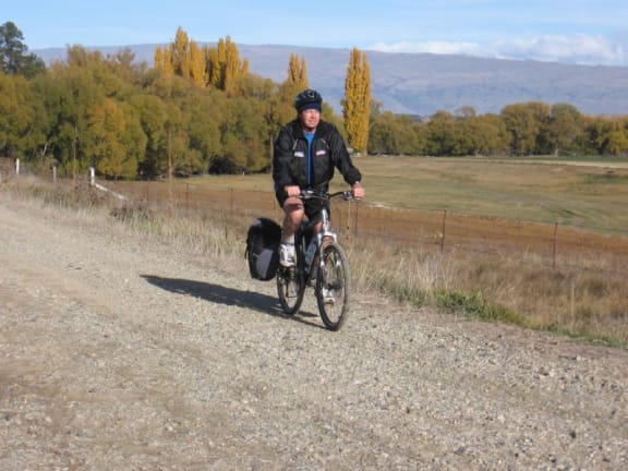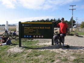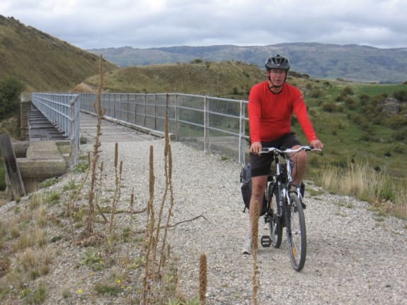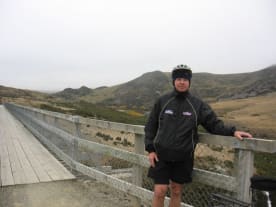 This Way Up host Simon Morton by the big bicycle sculpture in Taupo.
