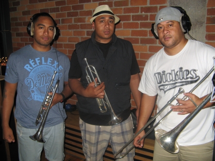 Three Houses Down brass section.