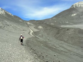 Scientific survey after the 2007 lahar on Mt Ruapehu. (GNS Science)