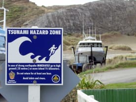 Boat Ramp sign warning of Tsunami danger.