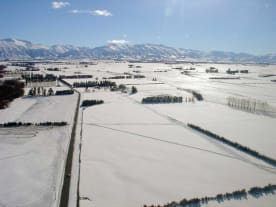 Snow covered farmland.