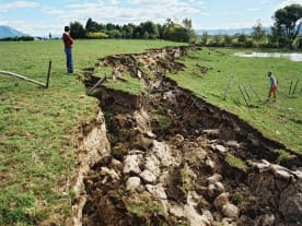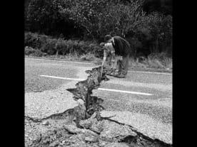 Earthquake damage to a road. Photo supplied by GNS.