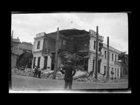 AMP (Australian Mutual Provident Society) building, Napier, damaged by the 1931 Hawkes Bay earthquake. Reference number: 1/4-017234-F Permission of the Alexander Turnbull Library, National Library of New Zealand, Te Puna Matauranga o Aotearoa must be obtained before any reuse of this image.