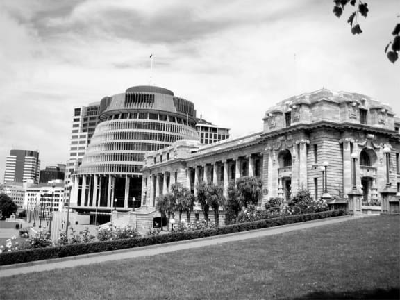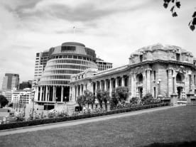 The Beehive and Parliament Buildings.