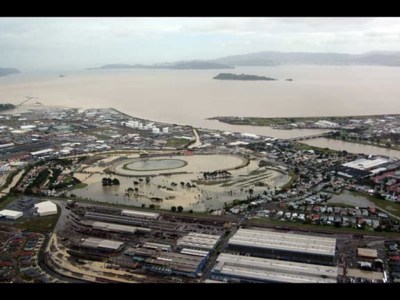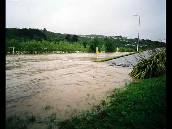 The Hutt river overflows its banks in the Hutt Valley.