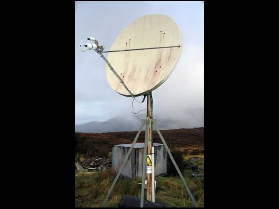 Satellite dish at Denniston North used to transmit seismic data.