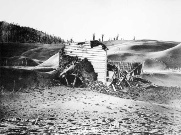 Tarawera flour mill after the eruption.