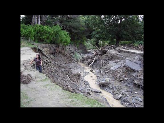 Bridge washout in Pohaninga. Photographer: Rosalie and Ossie Buchanan.
