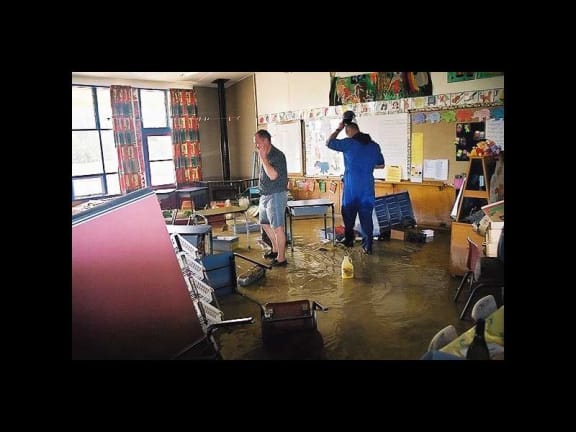 Kopane school classroom after a flood.