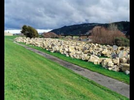 Stop banks on the Hutt river in Wellington.