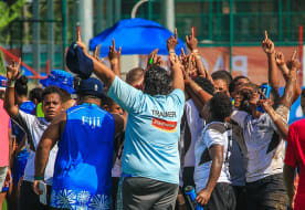 Vanuatu fans at beach volleyball - Pacific Games Service