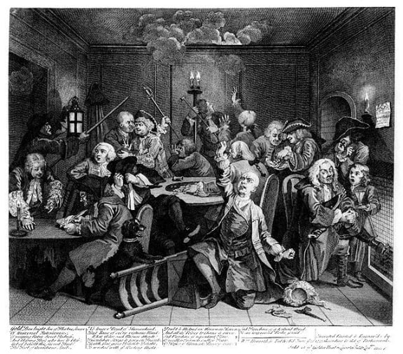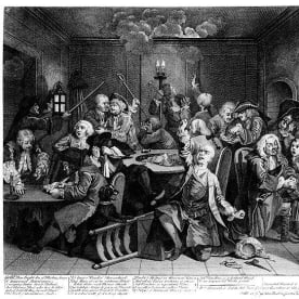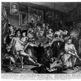 William Hogarth: A Rake's Progress, Plate 3: The Tavern Scene, Engraving, 35.5 x 41cm