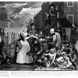 William Hogarth: A Rake's Progress, Plate 4: Arrested For Debt, Engraving, 35.5 x 41cm.