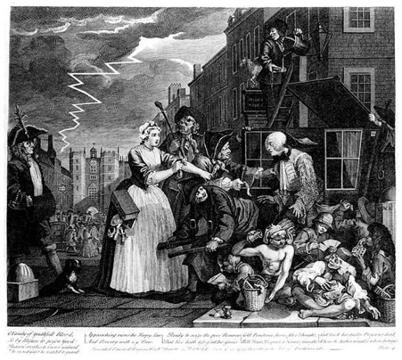 William Hogarth: A Rake's Progress, Plate 5: Married To An Old Maid, Engraving, 35.5 x 41cm