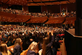 Choirs gather on stage. Photo RNZ/Rebecca Blundell.