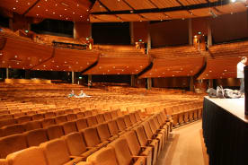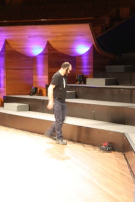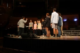 Rehearsing on stage at the Michael Fowler Centre. Photo RNZ/Rebecca Blundell.
