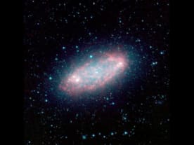 Galaxy NGC 2976, located approximately 10 million light-years away in the constellation Ursa Major near the Big Dipper. Unlike other spiral galaxies where the star-forming and dusty regions highlight spiral arms, this galaxy has a rather chaotic appearance. As the "glowing" red emission maps out, Spitzer is able to pierce through dense clouds of gas and dust that comprise the spiral disk, revealing new star formation that is driving the evolution of the galaxy. www.nasaimages.org