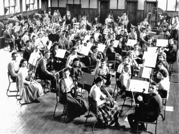 The National Youth Orchestra 1959. Beatrice is in the second row from the front wearing a black high-necked top.