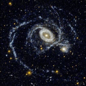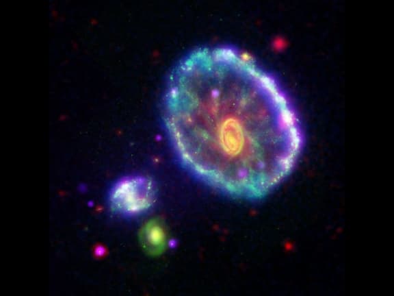 Approximately 100 million years ago, a smaller galaxy plunged through the heart of Cartwheel galaxy, creating ripples of brief star formation. www.nasaimages.org