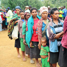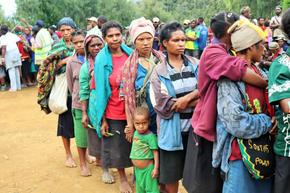 A group of women wait at Lil Care Centre in Nipa district to receive aid. Photo: Supplied/ ICRC