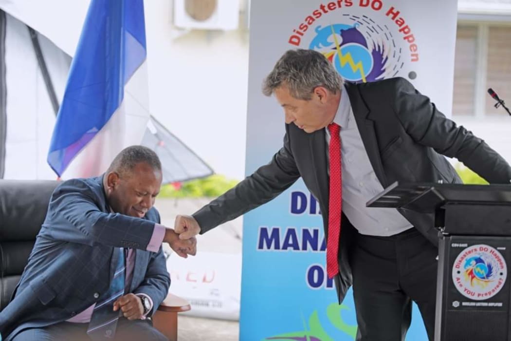 Fiji's Minister for National Disaster Management Inia Seruiratu and French Ambassador Jean-Francois Fitou. Photo: Supplied/Fiji govt