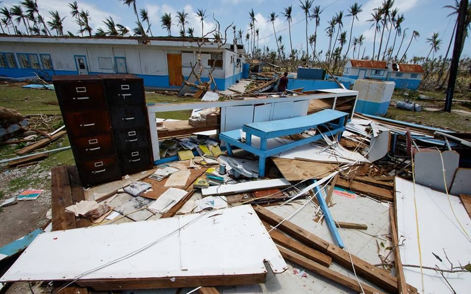 The category five system struck the states of Chuuk and Yap in March, killing five people, wiping out crops, contaminating water supplies, and destroying about 90 percent of infrastructure on some islands.