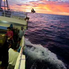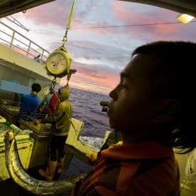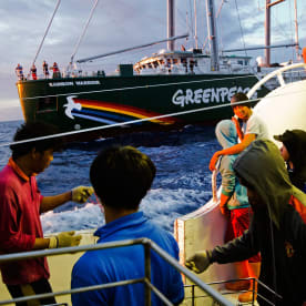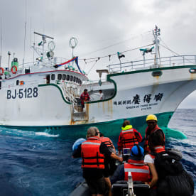 LT: Well, yeah this is a very interesting question, we normally have a debate about this here on our ship as well. Obviously we do not have any official powers to go onboard or do any formal inspection, so a lot of what we do is under the pretence of our right as an international organisation to peaceful protest that we do get the permission of the captain. Because of the vastness of the Pacific ocean and because of how big it is here, my personal view of this is that a lot of these fishing boats know that it is quite rare to get patrol boats coming up into the high seas because they know this is sort of their playground, this is a safe haven and for a lot of these fishing and corporations, they know the restrictions, they know the limitations and resources that our Pacific governments have. For example, Kiribati, is one of the 17 countries that shares this rich tuna fishing ground, their entire national waters is well over 3.2 million square kilometres of ocean yet they only have one patrol boat and every day there are at least 3,500 longliners that are licensed to operate openly in the Pacific. So the chances of finding an illegal operator in the vast Pacific ocean and recognising the limitation in enforcement and police capabilities of our countries, these are things they don't recognise and I think the hostility level here is less.