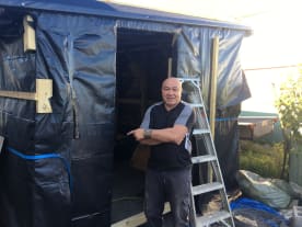 John Misky outside his Cannon's Creek shed at home in Porirua.