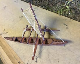 John Misky says the hull will be lashed to the outrigger 'ama' using natural fibres akin to traditional sennit.