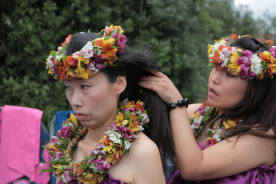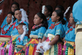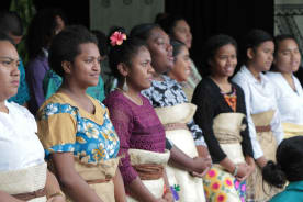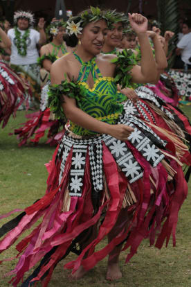 Daphne and Robeita - two i-Kiribati dancers from the group Teika bwara n Arorae, performed a Kiribati love song. Photo: RNZ/ Koroi Hawkins