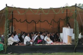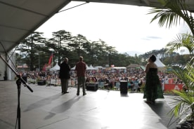 Minister of Pacific Peoples Alfred Ngaro opens up the Tongan village.