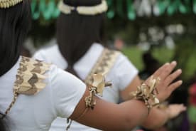 Moe ,who is Samoan, says her brother made her dress for the festival. RNZ/ Koroi Hawkins