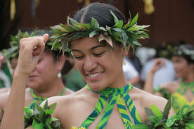 Traditional Tahitian dancing at the Tahiti village at Pasifika Festival 2017. Photo: RNZ/ Koroi Hawkins