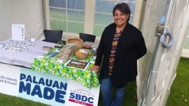 Tarita Holm has flown all the way from Palau to NZ for the first time to promote her Palaun-made coconut treats and other products at Pasifika. Photo: RNZ/ Koroi Hawkins