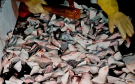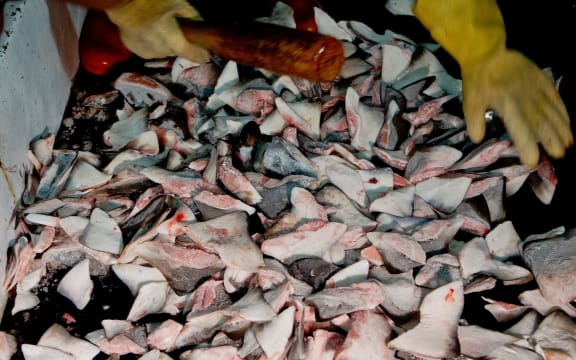 Sharkfins found in the vessel's freezer. Greenpeace says expert analysis shows many of the fins came from the vulnerable silky shark, a species protected by the Pacific Tuna Commission due to their plummeting numbers. Photo/ Paul Hilton