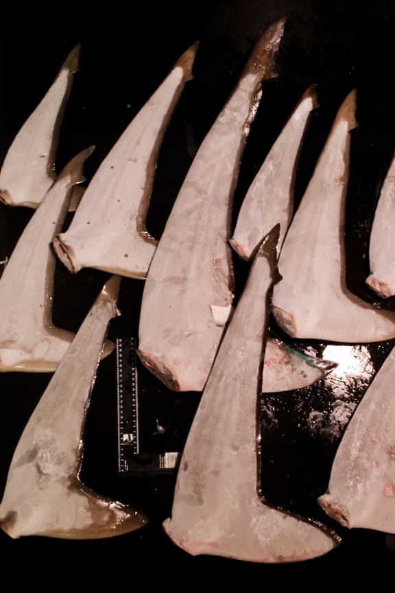 Greenpeace says under Taiwanese law and Pacific fishing rules, shark fins may not exceed 5% of the weight of the shark catch, and with only three shark carcasses reported in the log book, the vessel was in clear violation of both. Photo/Paul Hilton