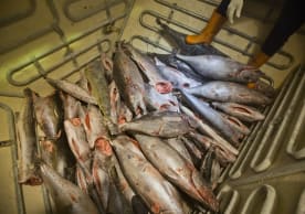 Shark tails found in the freezer of the Shuen De Ching No.888. Greenpeace says they counted 620 fins and 42 tail fins in the holds when they boarded. Photo/ Paul Hilton
